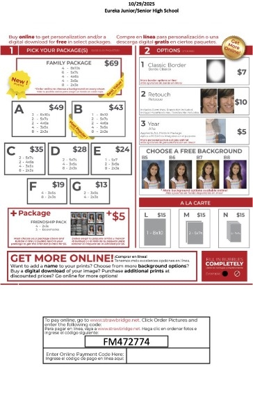 Strawbridge will be at EHS for Portrait Retakes on Wednesday, Oct. 29th.