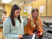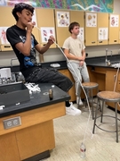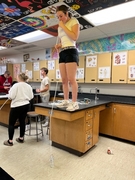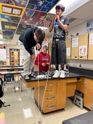 The chemistry class has covered a significant amount of content this year. We have covered density and how it manifests itself at the particle level, as well as how gases behave under different circumstances, and how air pressure affects a straw. We have also completed our exploration of the gas laws. All of this content has been grounded in observations and data from laboratory exercises completed by the students themselves. We also proved that a straw of approximately 20 feet is possible to drink from by climbing to the top of the football stands and drinking from the ground. Overall, we have had fun with our learning and explained several different phenomena in detail.
