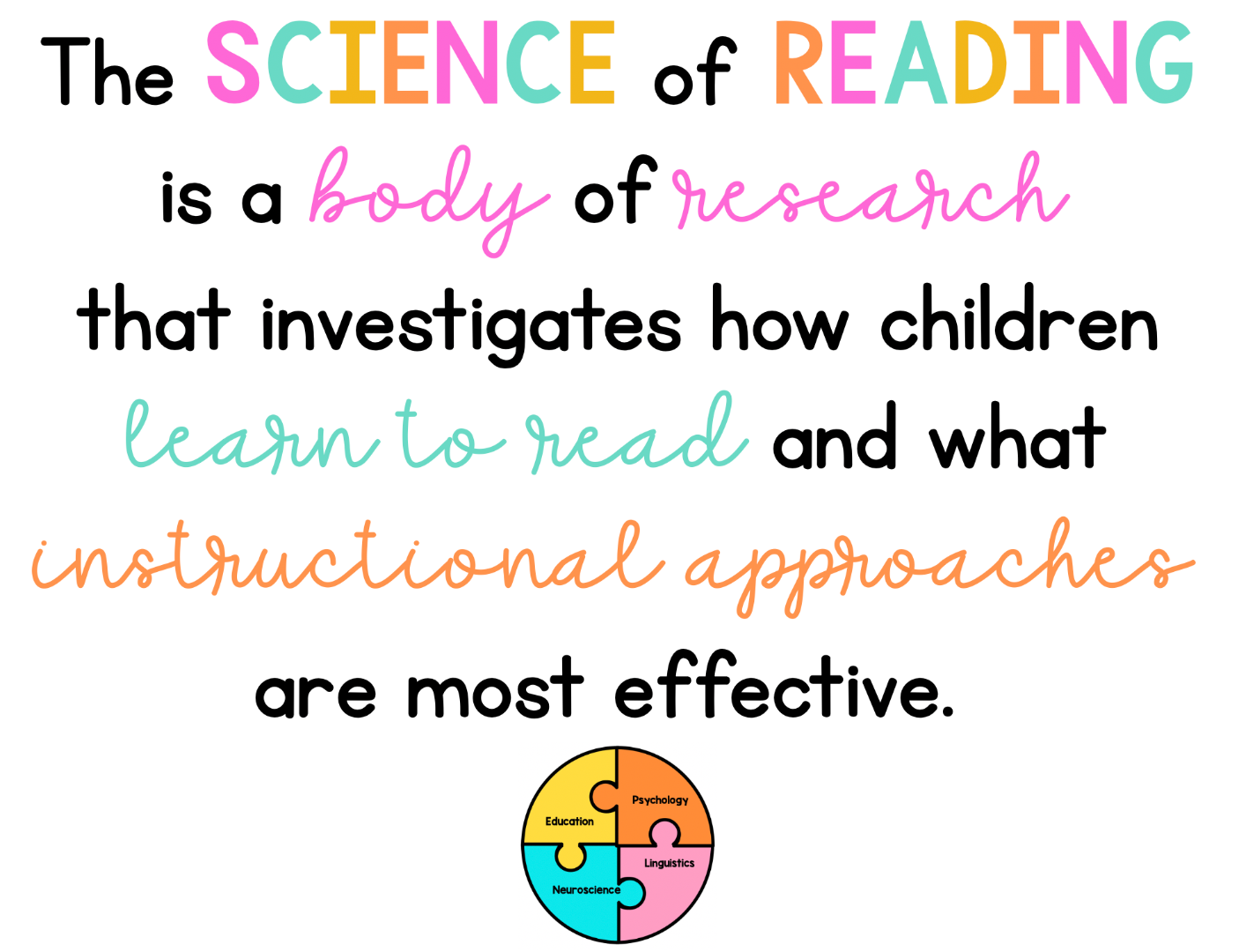Have you heard or seen information about the Science of Reading? Well, what exactly is the Science of Reading and what does it mean? The Science of Reading is a comprehensive body of evidence from over 50 years of interdisciplinary research - including cognitive psychology, neuroscience, and linguistics - that defines how the BRAIN learns to read. It emphasizes explicit, systematic instruction in phonological awareness, phonics, fluency, vocabulary, and comprehension.