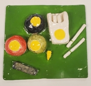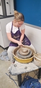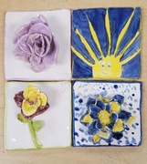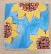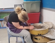 Ceramics II students have made tic tac toe sets and abstract sculptures most recently. And our one Ceramics III student has been working on a three tiered cake and now starting on a cake stand. Then Advanced Art student Grace Vogt has been challenging herself and learned how to throw a chip and dip bowl on the potter's wheel as well as a double wall bowl. Other classes are painting and drawing wonderful things; and seniors are beginning their senior tiles. The students are excited to pick their favorite projects to be in the Project Fair May 12th. But for now please enjoy a few pictures of students' projects that are attached.